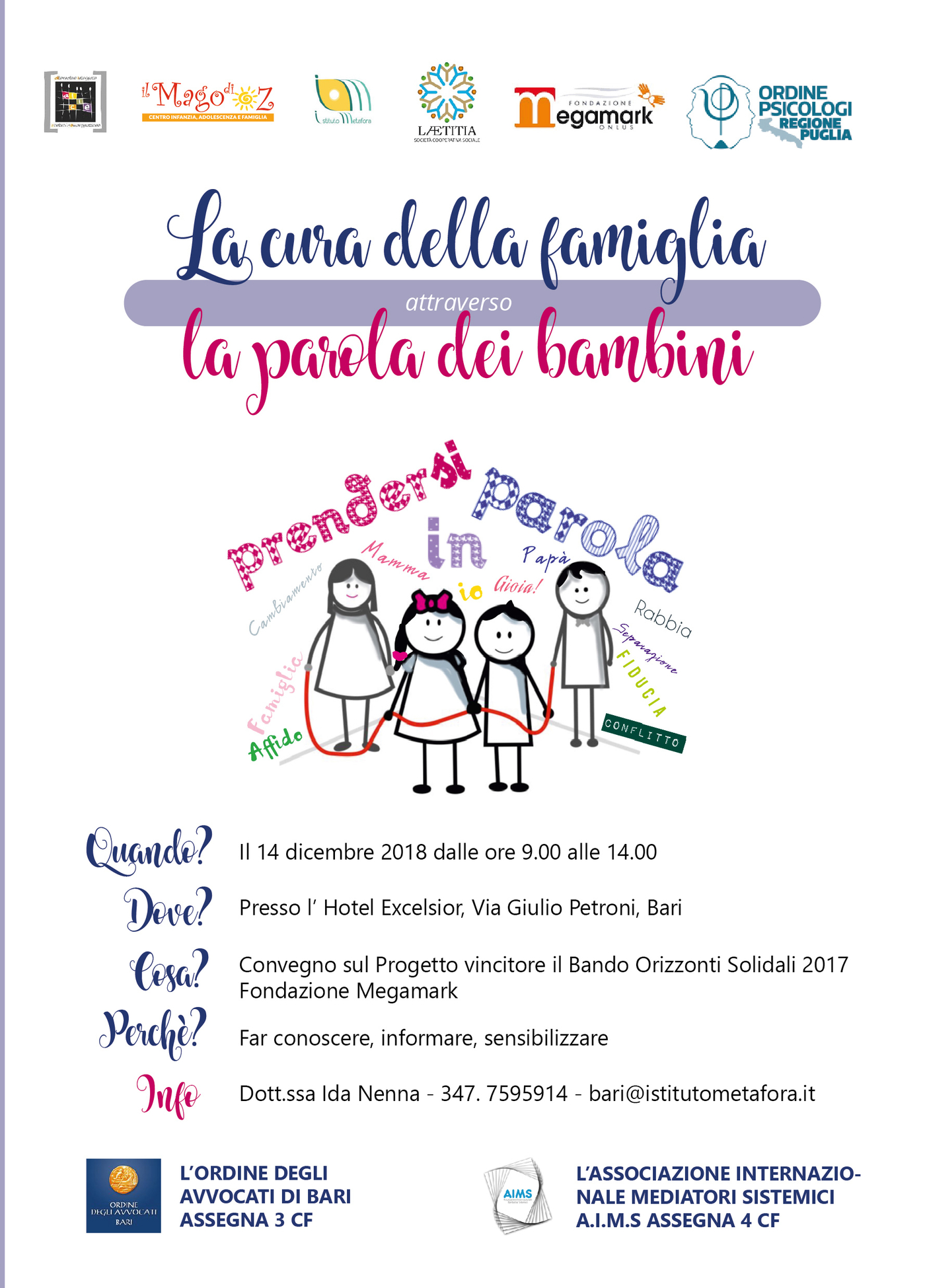 Convegno sul progetto vincitore il Bando Orizzonti Solidali 2017 - Fondzione Megamark patrocinato dall'Ordine degli Psicologi di Puglia. L'evento "La cura della famiglia attraverso la parola dei bambini...