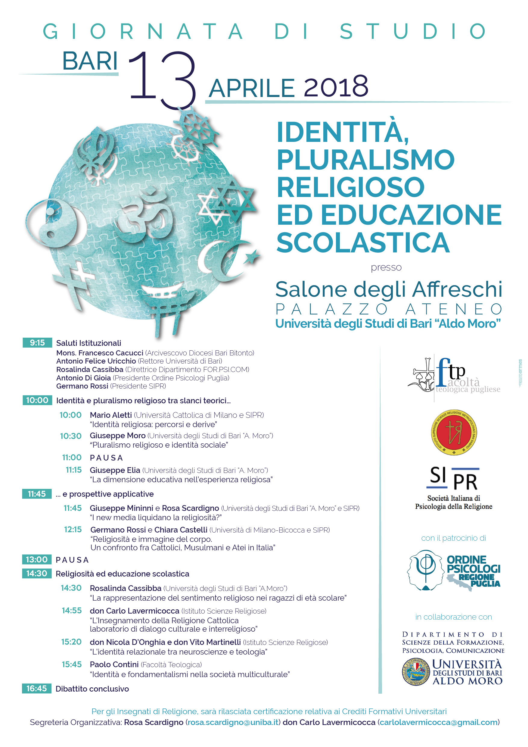 Il 13 aprile 2018 si svolgerà l'evento organizzato dalla Facoltà di Teologica Pugliese e dalla Società Italiana di Psicologia della Religione, patrocinato dall'Ateneo di Bari e dall'Ordine degli...