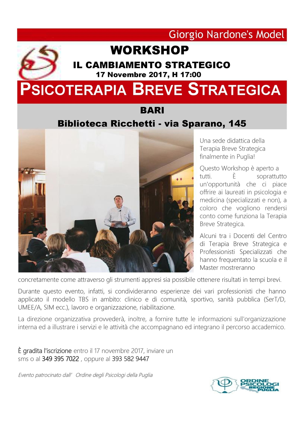 L'Ordine è lieto di segnalare il workshop "Il cambiamento strategico" che si terrà venerdì 17 novembre, dalle ore 17, presso la Bibliioteca Ricchetti in via Sparano 145. ...