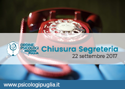 La Segreteria dell'Ordine rimarrà chiusa al pubblico per tutta la giornata di domani, 22 settembre, in occasione del convegno "I bisogni psicosociali dei pazienti e dei loro caregivers"...