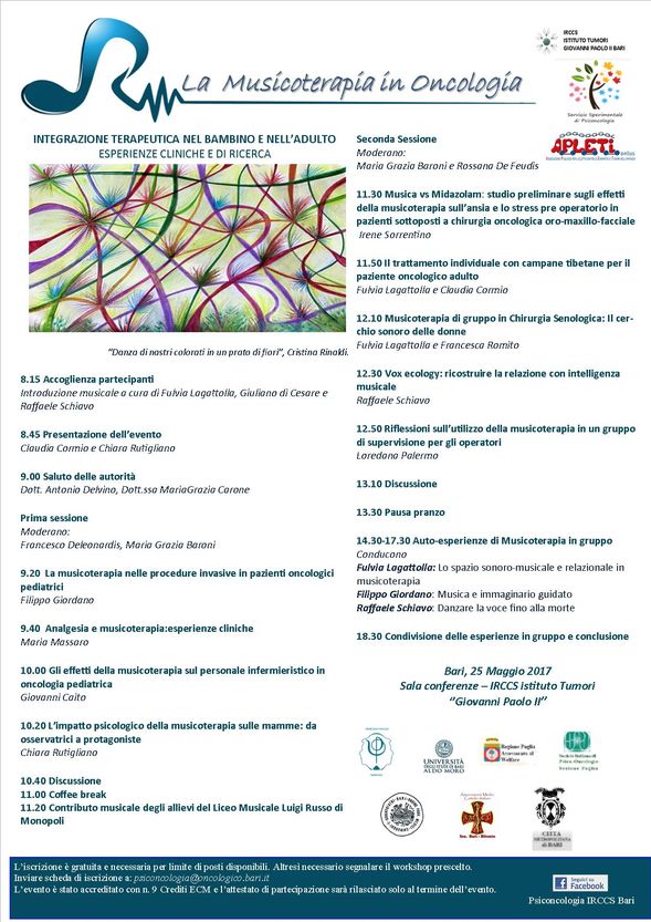 L'evento patrocinato dall'Ordine degli Psicologi della Regione Puglia, "La Musicoterapia in Oncologia: integrazione terapeutica nel bambino e nell'adulto", sarà occasione per discutere di esperienze cliniche e di ricerca...