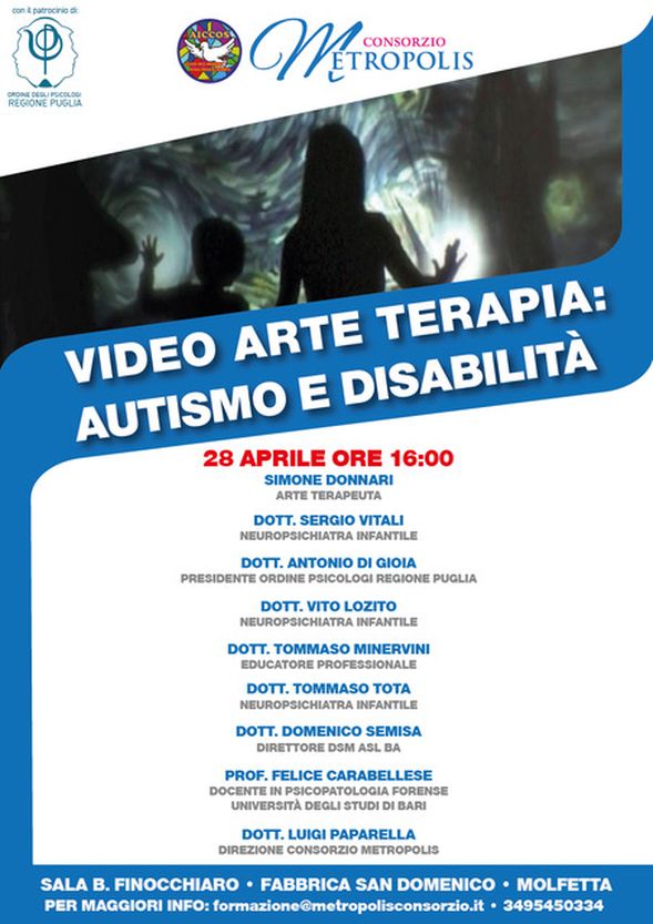 L'evento patrocinato dall'Ordine degli Psicologi della Puglia, Video arte terapia: autismo e disabilità si terrà il prossimo 28 aprile 2017, ore 16, presso la Sala Finocchiaro della Fabbrica...