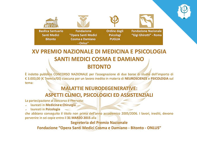 XV Premio Nazionale di Medicina e Psicologia – Santi Medici Cosma e Damiano Bitonto