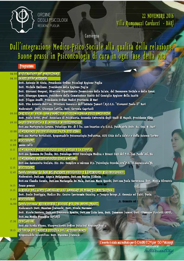 Per registrarsi al convegno occorre reinviare la scheda di iscrizione, debitamente compilata in ogni sua parte, all'indirizzo segreteria@psicologipuglia.it Convegno organizzato dall'Ordine degli Psicologi della Regione Puglia sul tema...