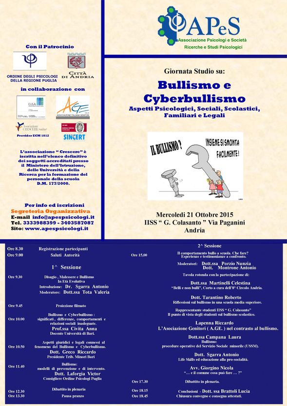 Egregio Dottore/Gentile Dottoressa, Le inoltriamo la locandina e la scheda di iscrizione relativi al Convegno che si terrà il giorno 23 ottobre a Bitonto (BA) presso l’Auditorium “E....