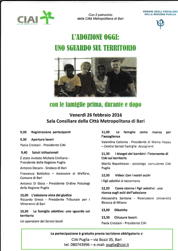 Convegno del CIAI del 26.02.2016 dal titolo"L'adozione oggi: uno sguardo sul territorio"