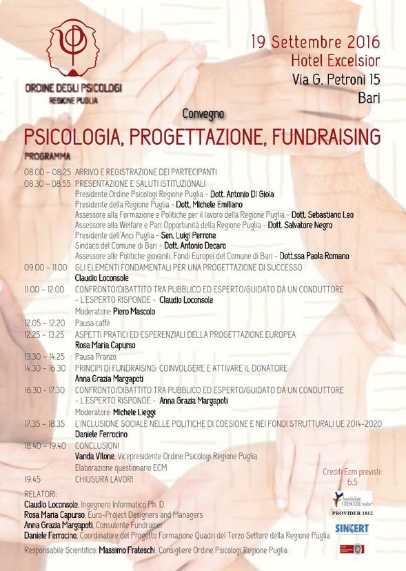 Egregio Dottore/Gentile Dottoressa, La informiamo che in occasione della 79^ edizione della Fiera del Levante l’Ordine degli Psicologi della Regione Puglia ha organizzato un Convegno dal titolo_ “PSI...