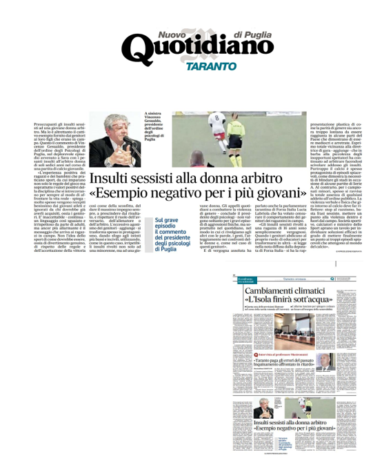 Insulti sessisti contro l’arbitro donna, l’Ordine degli Psicologi – Buonasera Taranto