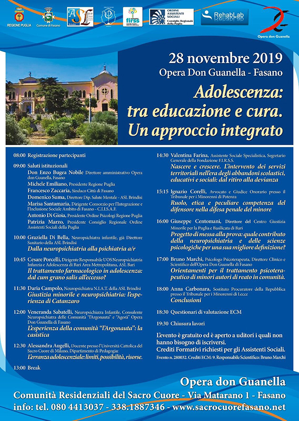 Siamo lieti di invitarvi all'evento patrocinato "Adolescenza: tra educazione e cura. Un approccio integrato", che si terrà giovedì 28 novembre 2019, presso Opera Don Guanella - Comunità Residenziali...