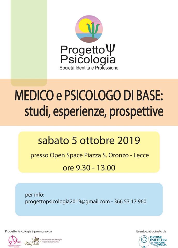Vi invitiamo all'appuntamento con Progetto Psicologia - Società Identità e Professione Sabato 5 ottobre 2019 dal titolo "MEDICO e PSICOLOGO DI BASE: studi, esperienze, prospettive", che si svolgerà...