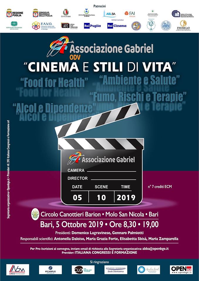 Abbiamo il piacere di invitarvi all'evento patrocinato "Cinema e Stili di Vita" che si terrà il 5 Ottobre 2019 dalle 8:30 alle 19:00 presso il Circolo Canottieri Barion,...