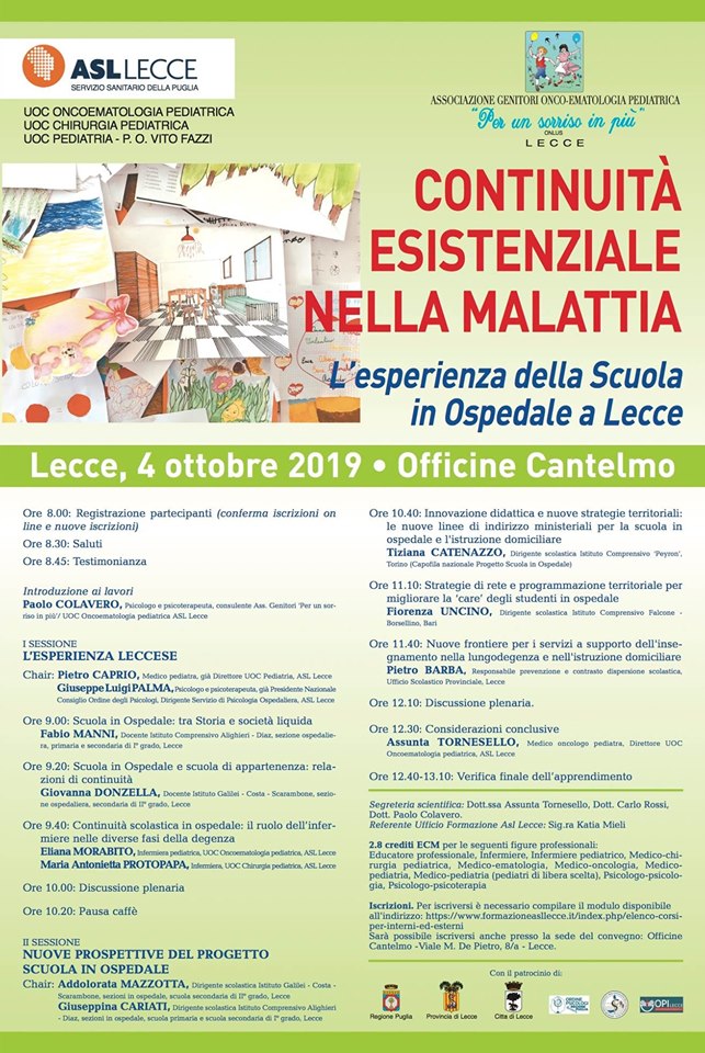 Vi invitiamo a partecipare al convegno CONTINUITÀ ESISTENZIALE NELLA MALATTIA L'esperienza della Scuola in Ospedale a Lecce Lecce, 4 ottobre 2019 ▪ Officine Cantelmo