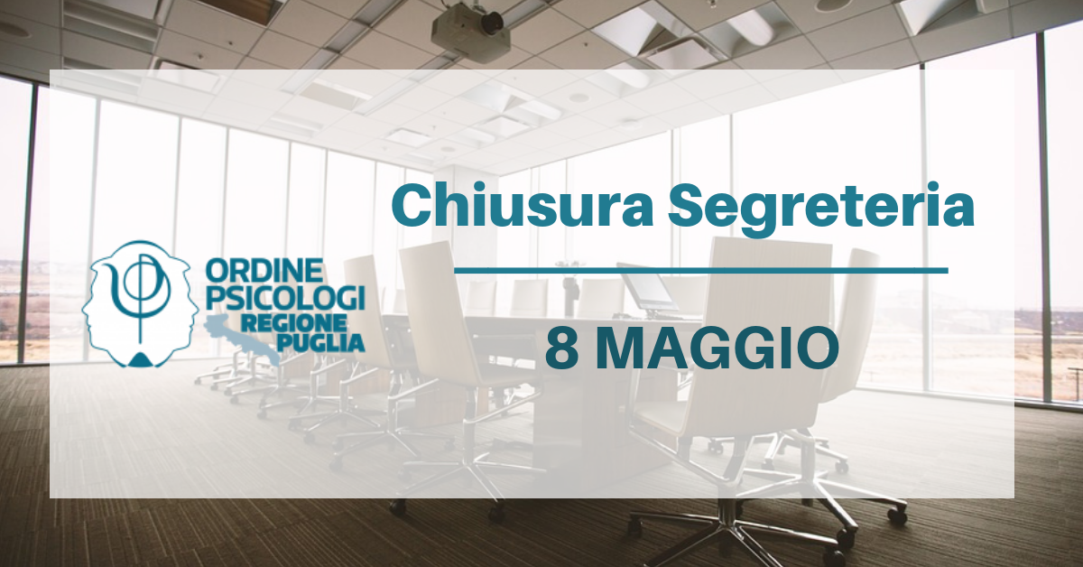 Il prossimo 8 maggio 2019 gli uffici dell’Ordine degli Psicologi Regione Puglia saranno chiusi in occasione della festa patronale della città di Bari.