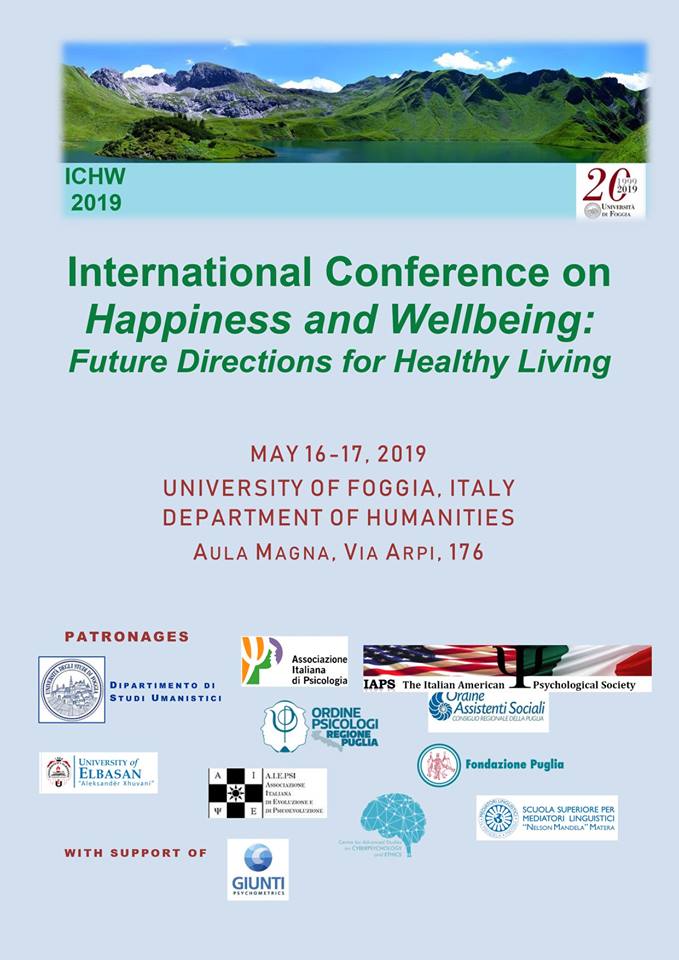 Vi invitiamo alla conferenza "International Conference on Happiness and Wellbeing: Future Directions for Healthy Living". L'evento, da noi patrocinato, si terrà nei giorni 16 e 17 Maggio nell'Aula...
