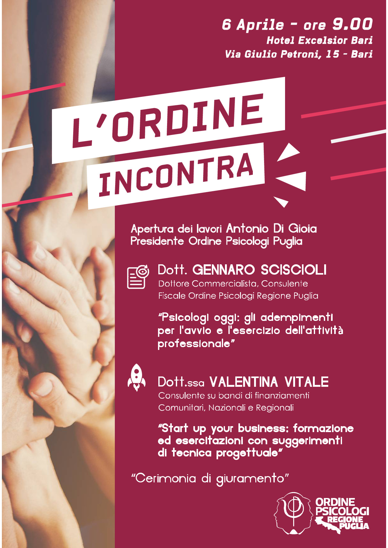 Gentile Collega, ti informo che il 6 aprile p.v. a Bari, è previsto il terzo appuntamento del progetto l'Ordine Incontra, un ciclo di appuntamenti sul territorio pugliese, una...