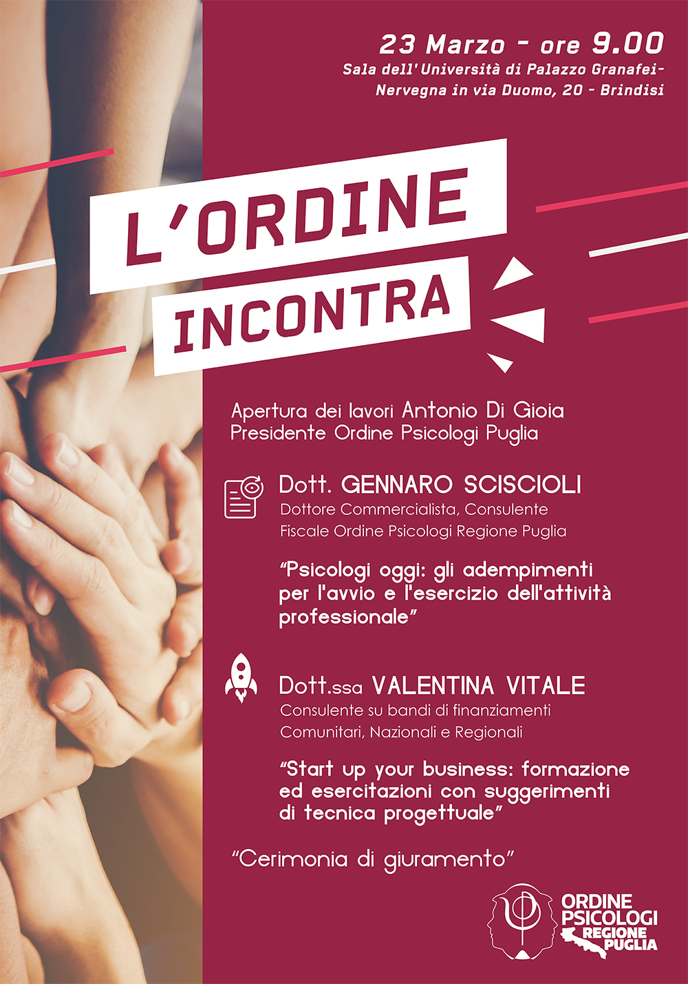 Gentile Collega, ti ricordo che il 23 marzo p.v. a Brindisi, è previsto il secondo appuntamento del progetto l'Ordine Incontra, un ciclo di appuntamenti sul territorio pugliese, una...