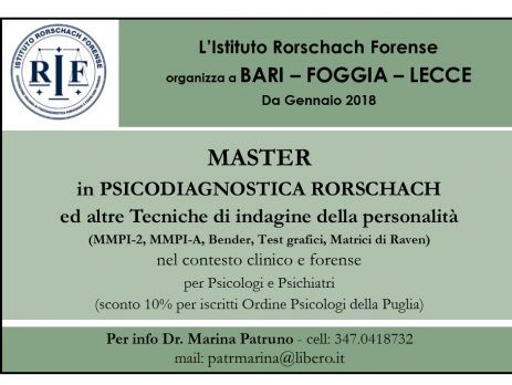 Patruno Marina: patruno@rorschachforense.it – patrmarina@libero.it – cel. 347 0418732