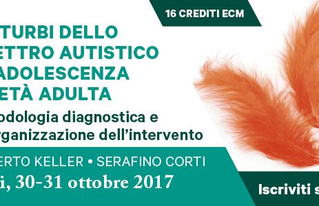 Comunichiamo che nei giorni 30-31 Ottobre 2017 si terrà a Bari il Corso di formazione Disturbi dello spettro autistico in adolescenza ed età adulta: Metodologia diagnostica e di organizzazione dell’intervento tenuto dal prof. Roberto Keller e dal prof. Serafino Corti.