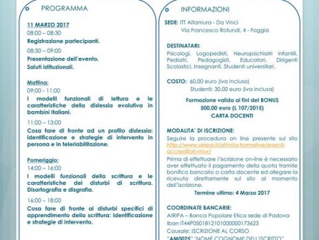 L’evento organizzato dall’AIRIPA è accreditato MIUR. È pertanto richiesta iscrizione per la partecipazione.
