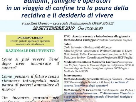 Evento patrocinato “Bambini, famiglie e operatori in un viaggio di confine tra la paura della recidiva e il desiderio di vivere”