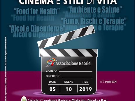 Abbiamo il piacere di invitarvi all’evento patrocinato “Cinema e Stili di Vita” che si terrà il 5 Ottobre 2019 dalle 8:30 alle 19:00 presso il Circolo Canottieri Barion, Molo San Nicola a Bari