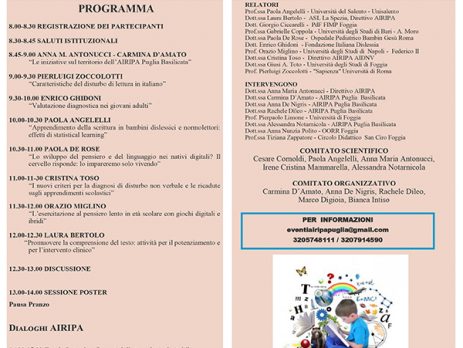 Evento patrocinato “Convegno Regionale AIRIPA PUGLIA BASILICATA – IL CONTRIBUTO DELLA CLINICA E DELLA RICERCA IN TEMA DI BES E DSA LAVORI IN CORSO…”