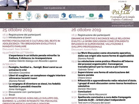 Vi invitiamo il 25 e il 26 ottobre 2019 al convegno dal titolo: “Crisi delle relazioni e costruzione di legami: il metodo psicoanalitico come risorsa”, che si svolgerà presso il Museo S. Castromediano, Lecce.