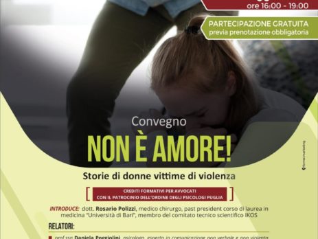 Si comunica l’evento patrocinato dall’Ordine degli Psicologi della Regione Puglia: Non è Amore. Storie di donne vittime di violenza, che si terrà il giorno 26 maggio 2022, dalle ore 16:00 alle ore 19:00, presso il Museo Civico di Bari, strada Sagges, 13.
