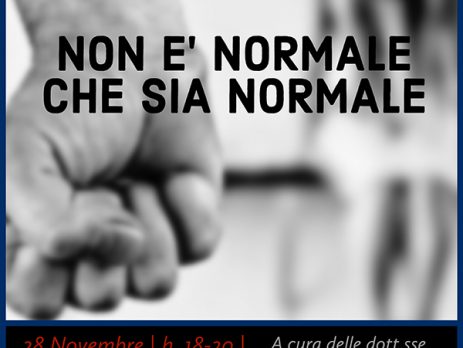 Vi invitiamo all’evento patrocinato dall’Ordine degli Psicologi Puglia dal titolo “Non è normale che sia normale”, a cura delle dott.sse Dina Ciuffreda, L. M. Grazia Colletta e Francesca Pecoriello, che si terrà il giorno 28 novembre 2019, presso il Museo Civico di Mattinata (FG), dalle ore 18:00 alle ore 20:00.
