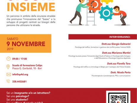 Siamo lieti di invitarvi all’evento patrocinato “Sicuri Insieme” che si terrà sabato 09 novembre 2019 dalle ore 09:00 alle ore 17:00, presso la Scuola di formazione Celips, Bari.