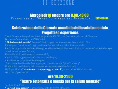 - ore 13:30-21:00 – Teatro, fotografia, poesia per la salute mentale