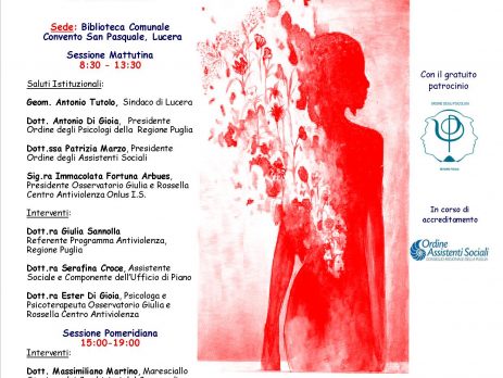 Per info e iscrizioni: centroantiviolenzalucera@gmail.com – 388 7504780