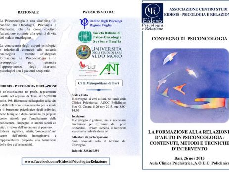 ASSOCIAZIONE CENTRO STUDI EIDESIS – PSICOLOGIA E RELAZIONE LA FORMAZIONE ALLA RELAZIONE D’AIUTO IN PSICONCOLOGIA: CONTENUTI, METODI E TECNICHE D’INTERVENTO