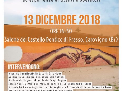 L’evento “Ma è vero che nella REMS…?” si svolgerà presso il Salone del Castello Dentice di Frasso di Carovigno (Br) a partire dalle ore 16:30 di giovedì 13 dicembre.