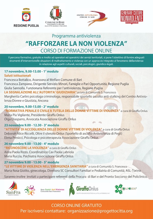 Corso on-line: “Rafforzare la non violenza” Assessorato al Welfare – Alla Città Solidale e Inclusiva – Comune di Bari