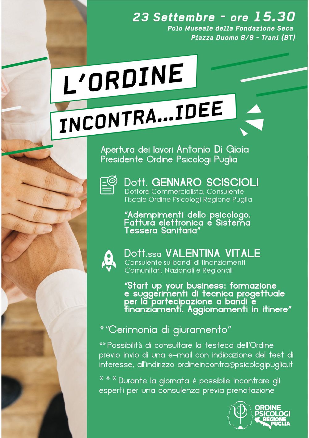 Il 23 settembre p.v. a Trani, riprendono gli appuntamenti dell’Ordine Incontra, un ciclo di appuntamenti sul territorio pugliese, una serie di incontri formativi per ogni provincia, gratuiti, sia...