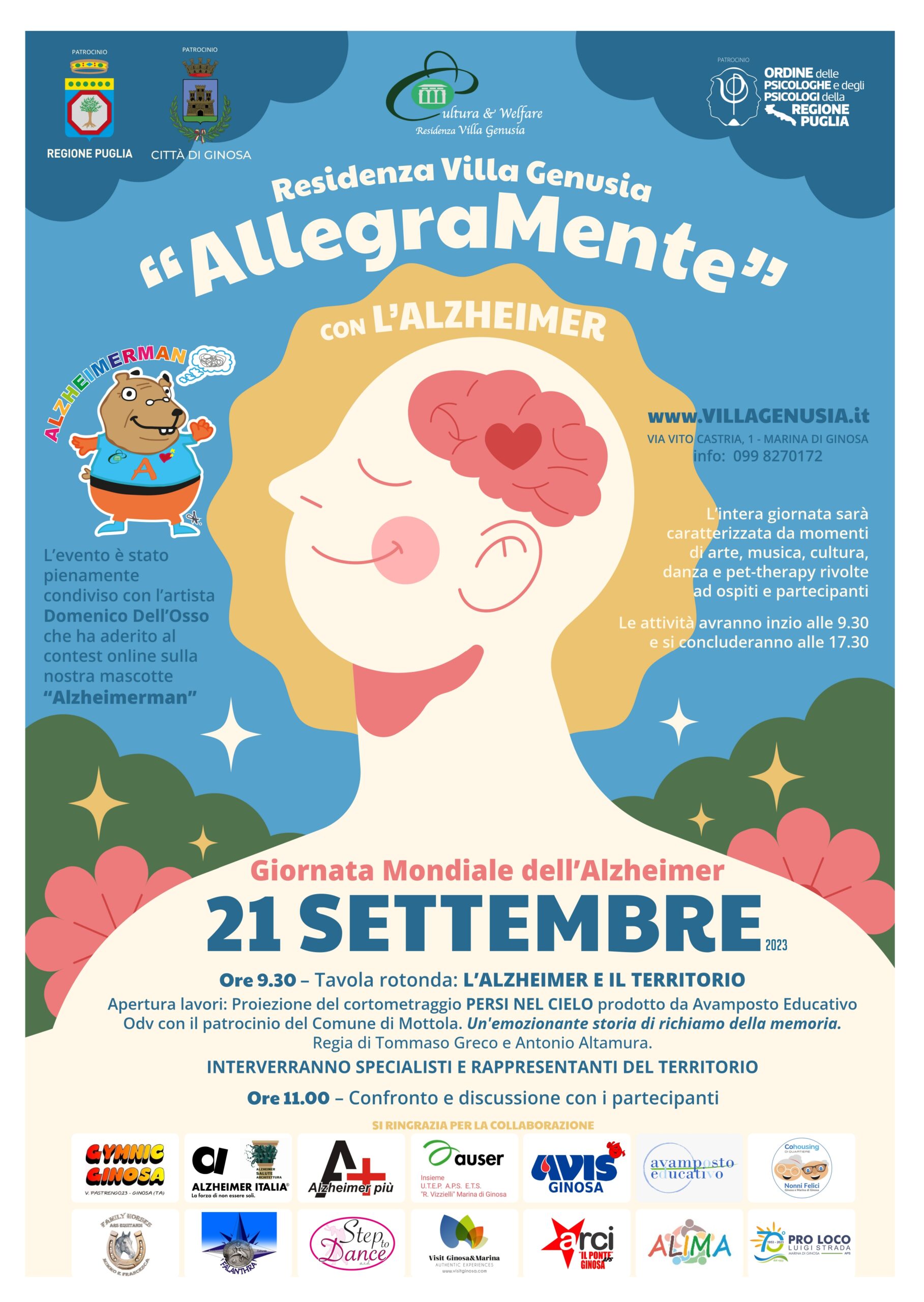 π†π’π¨π―πžππ’Μ€ 𝟐𝟏 π¬πžπ­π­πžπ¦π›π«πž, in occasione della π†π’π¨π«π§πšπ­πš 𝐌𝐨𝐧𝐝𝐒𝐚π₯𝐞 𝐝𝐞π₯π₯’𝐀π₯𝐳𝐑𝐞𝐒𝐦𝐞𝐫, si terrΓ  presso la Residenza Villa Genusia di Marina di Ginosa, l’evento “𝐀π₯π₯𝐞𝐠𝐫𝐚𝐌𝐞𝐧𝐭𝐞” 𝐜𝐨𝐧 𝐋’π€π‹π™π‡π„πˆπŒπ„π‘.