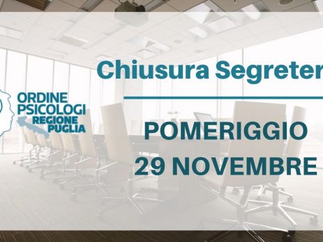 Novembre 28, 2019 CHIUSURA SEGRETERIA 9dt3vn2019-11-28T17:14:23+01:00 A causa della prosecuzione delle operazioni elettorali, si comunica la chiusura al pubblico della segreteria per il pomeriggio del 29 novembre 2019. Condividi questo post Facebook cinguettio LinkedIn E-mail WhatsApp