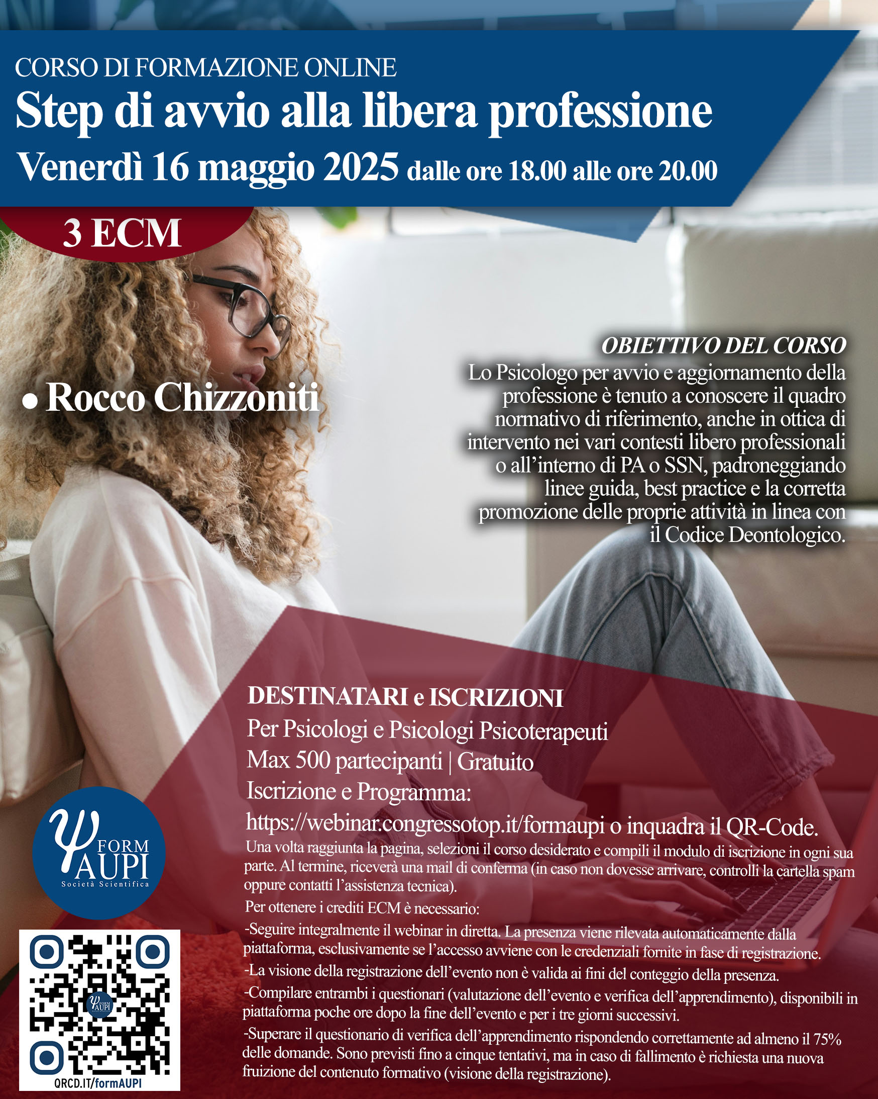 Aprile 18, 2025 Corso ECM gratuito per psicologi, dal titolo: “Step di avvio alla libera professione”. Carlo Chiarini2025-04-18T13:02:15+02:00 Scarica l'allegato Condividi questo post Facebook cinguettio LinkedIn E-mail WhatsApp