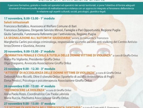 Vi invitiamo a partecipare al Corso on-line dal titolo “Rafforzare la non violenza“, pervenuto dall’Assessorato al Welfare – Alla Città Solidale e Inclusiva – Comune di Bari.