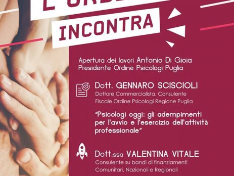 Seguendo la pagina Facebook dell’Ordine degli Psicologi della Regione Puglia, potrai conoscere per tempo le prossime date e le prossime tappe del progetto l’Ordine Incontra per le settimane successive.