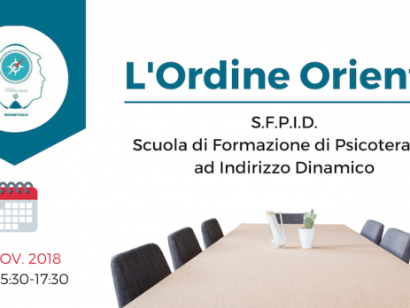 Il prossimo evento sarà gestito dalla Scuola di Formazione di Psicoterapia ad Indirizzo Dinamico (SFPID) e si terrà il 30 novembre 2018 dalle ore 15.30 alle ore 17.30 presso la sede dell’Ordine degli Psicologi della Regione Puglia in via F.lli Sorrentino 6, a Bari.
