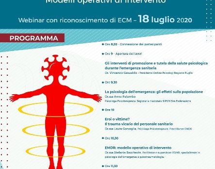 ho il piacere di invitarti al webinar organizzato dall’Ordine degli Psicologi della Regione Puglia, sul tema “Tutelare il benessere psicologico al tempo dell’emergenza sanitaria COVID-19. Modelli operativi di intervento“.