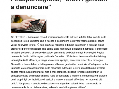 COPERTINO – Ancora un caso di minorenni adescate sul web in tutta Italia, cadute nella pericolosa rete di un uomo che è riuscito a costringere le giovani vittime a ritrarsi senza vestiti ed inviare le foto.