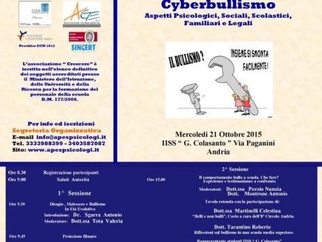 Giornata Studio su Bullismo e Cyberbullismo Aspetti Psicologici, Sociali, Scolastici, Familiari e Legali